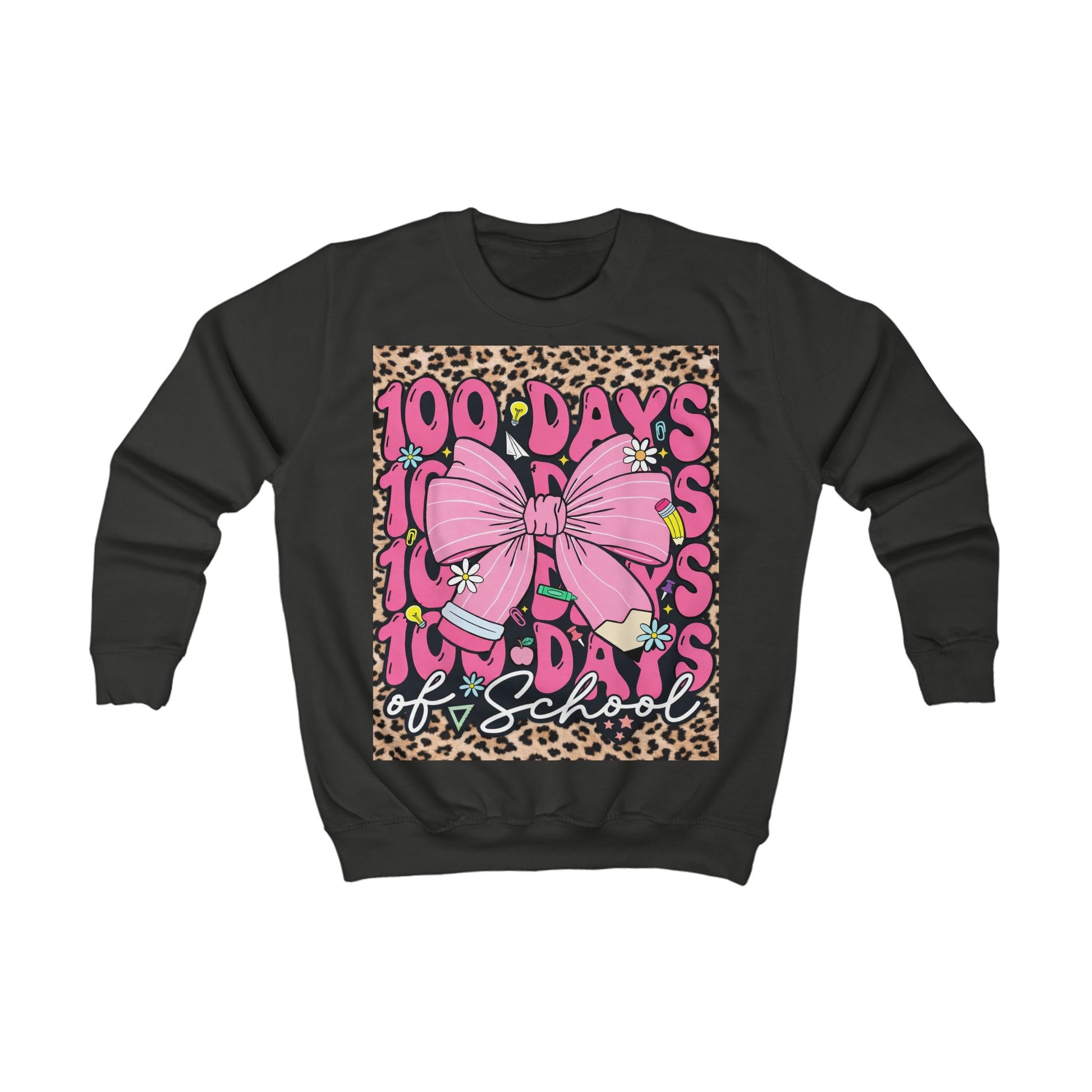 100 Days of School Kids Sweatshirt — Pink Bow Leopard Design